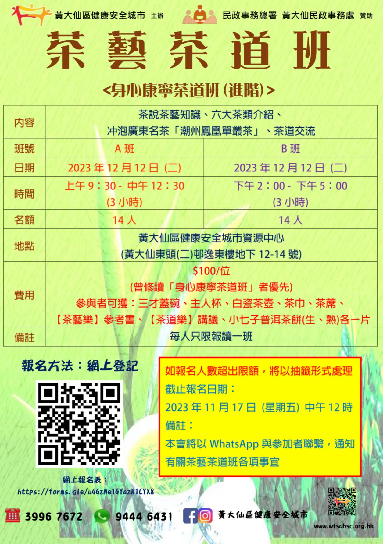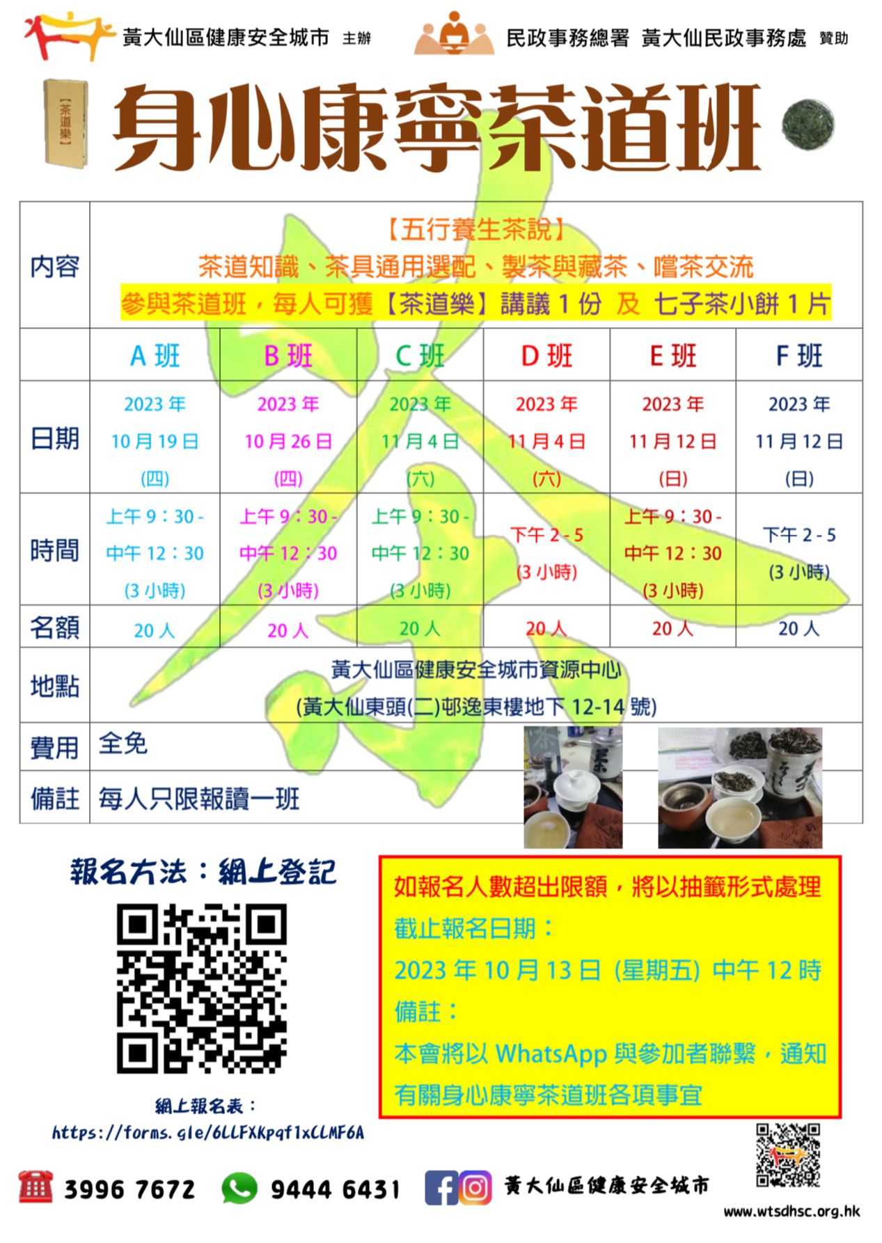 日期﹕2023年10月19、26日、11月4、12日、12月12日