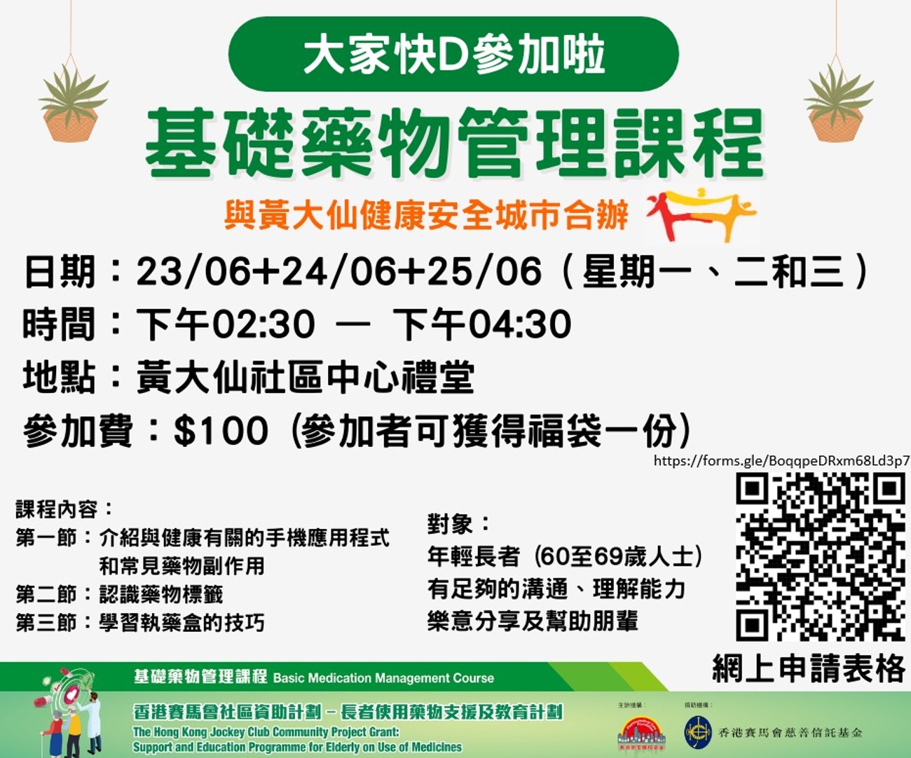 為讓更多居民認識藥物管理,本會與香港藥學服務基金合辦「基礎藥物管理課程」已完滿結束。