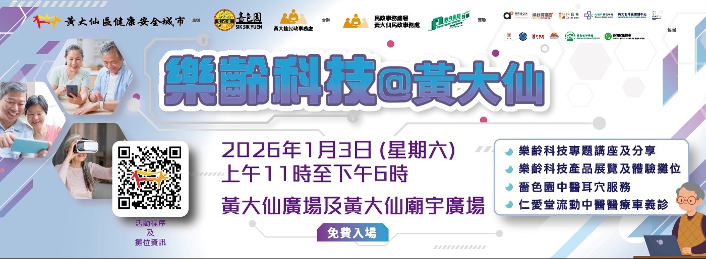 為在黃大仙區推廣樂齡科技,藉現今先進科技幫助解決長者日常生活需要,爲他們提供一個健康,舒適和安全的環境。 黃大仙區健康安全城市將於今星期六舉行「樂齡科技@黃大仙」,是次活動有