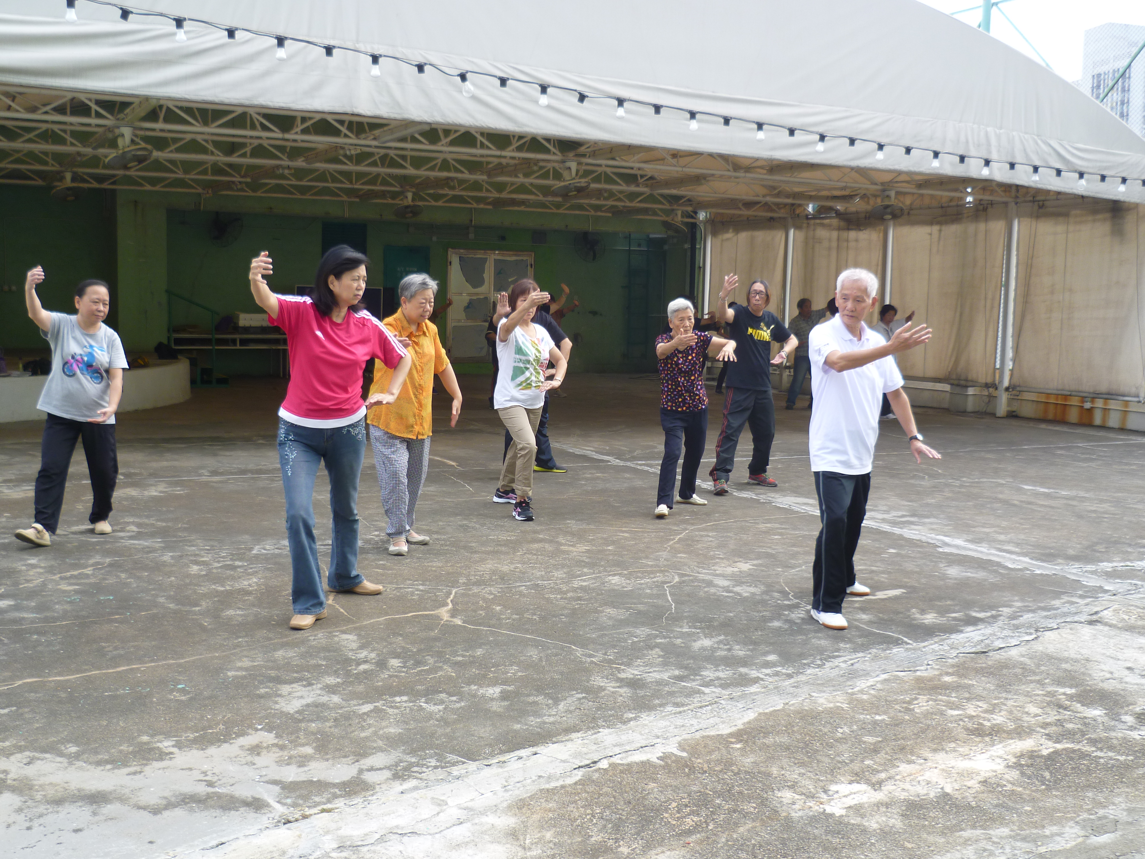 - 本會邀請到資深太極師傅陳麗芳師傅及楊彩雲師傅到場教授「黃大仙區防跌八式」