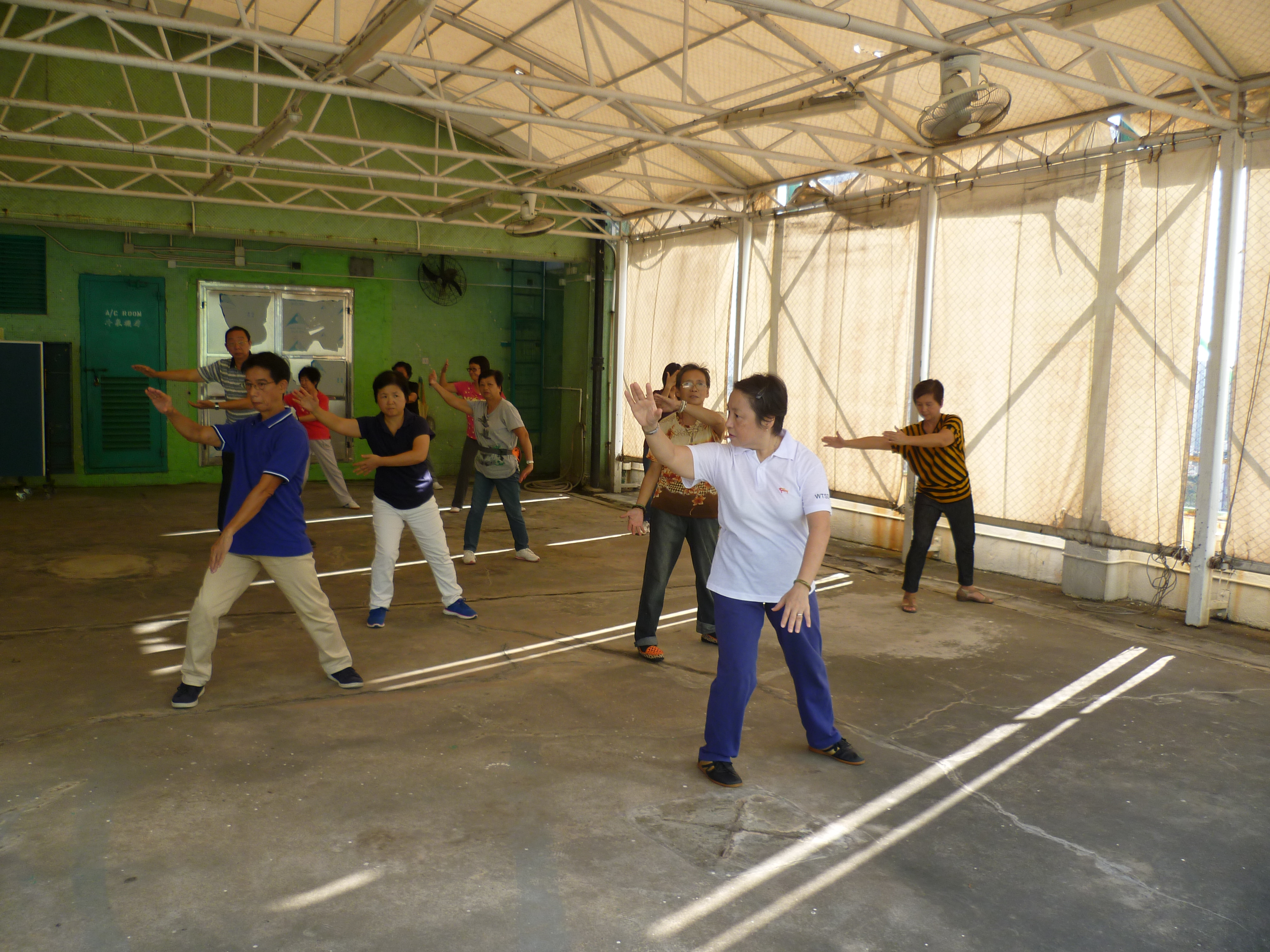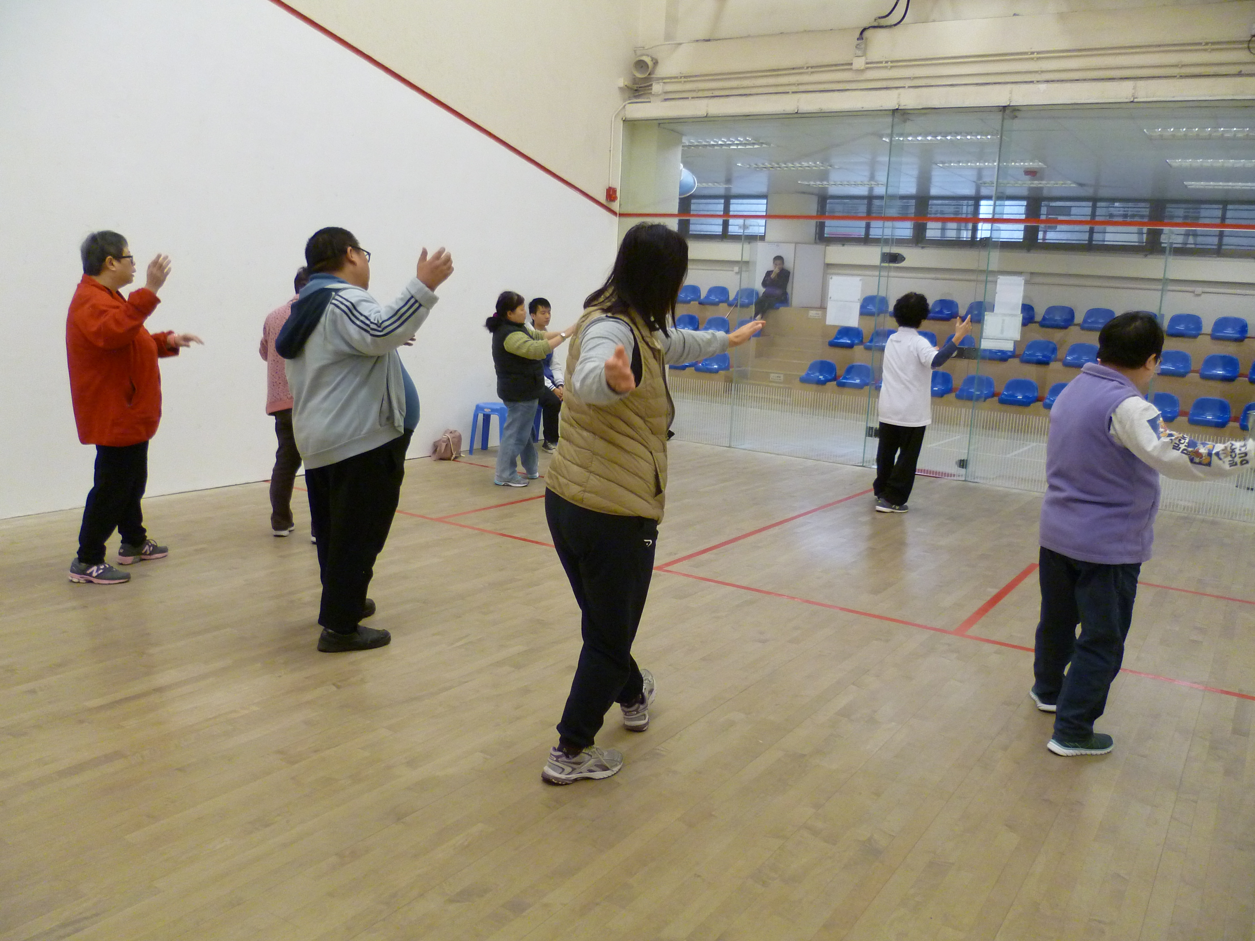 - 本會邀請到資深太極師傅陳麗芳師傅到場教授「黃大仙區防跌八式」安坐版本