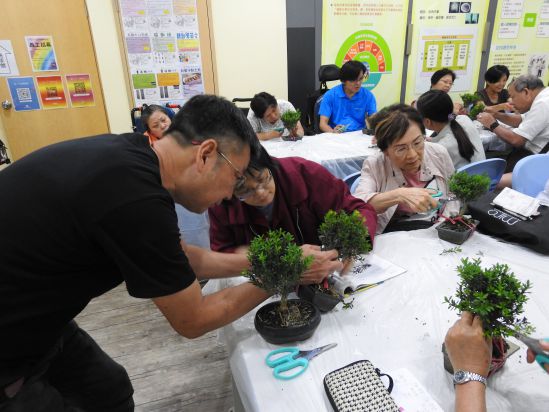 盆景不單美觀﹐又能陶冶性情 ﹐故本會特意邀請現任香港盆景藝術會主席—李景民先生擔任導師﹐教導居民製作盆景。