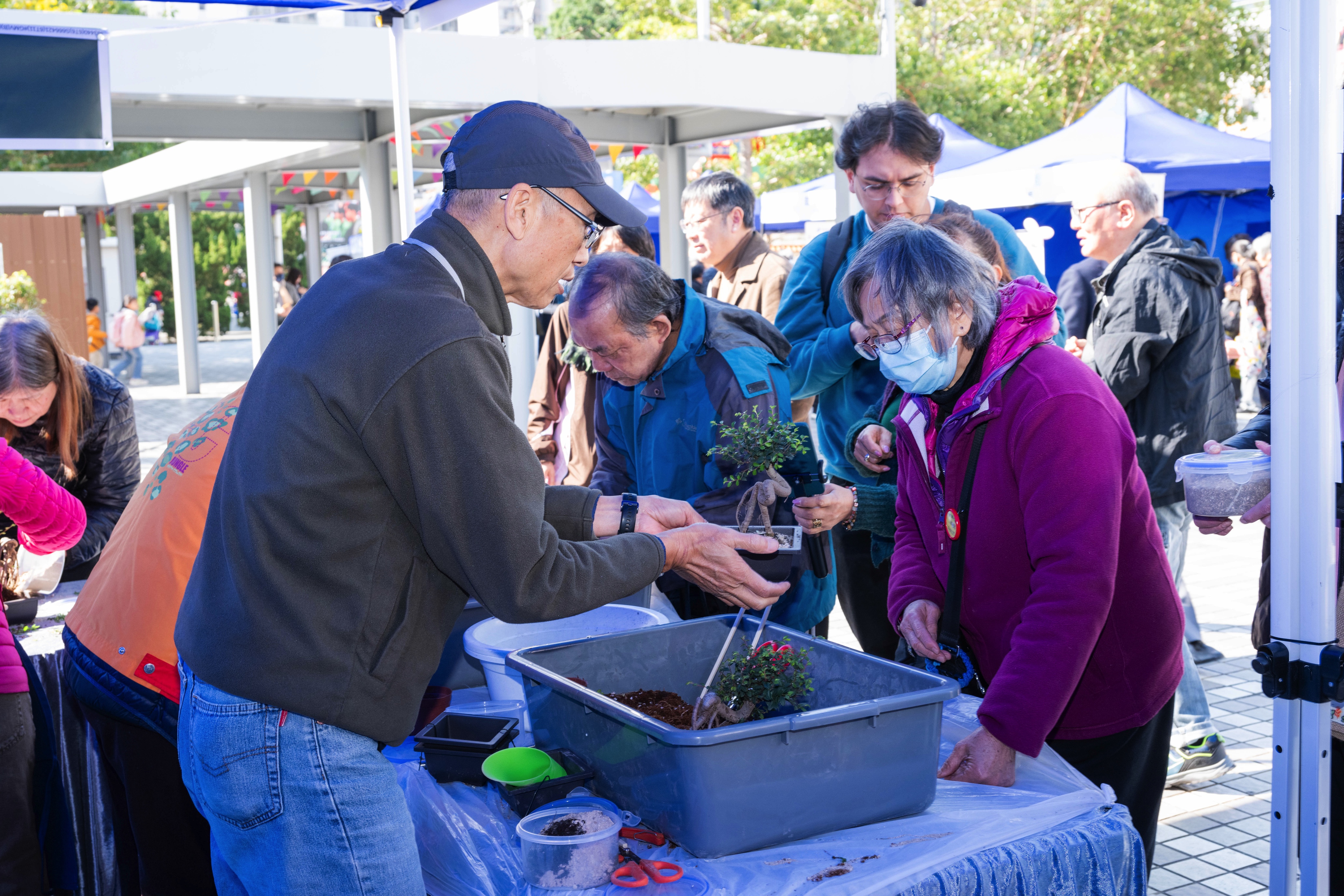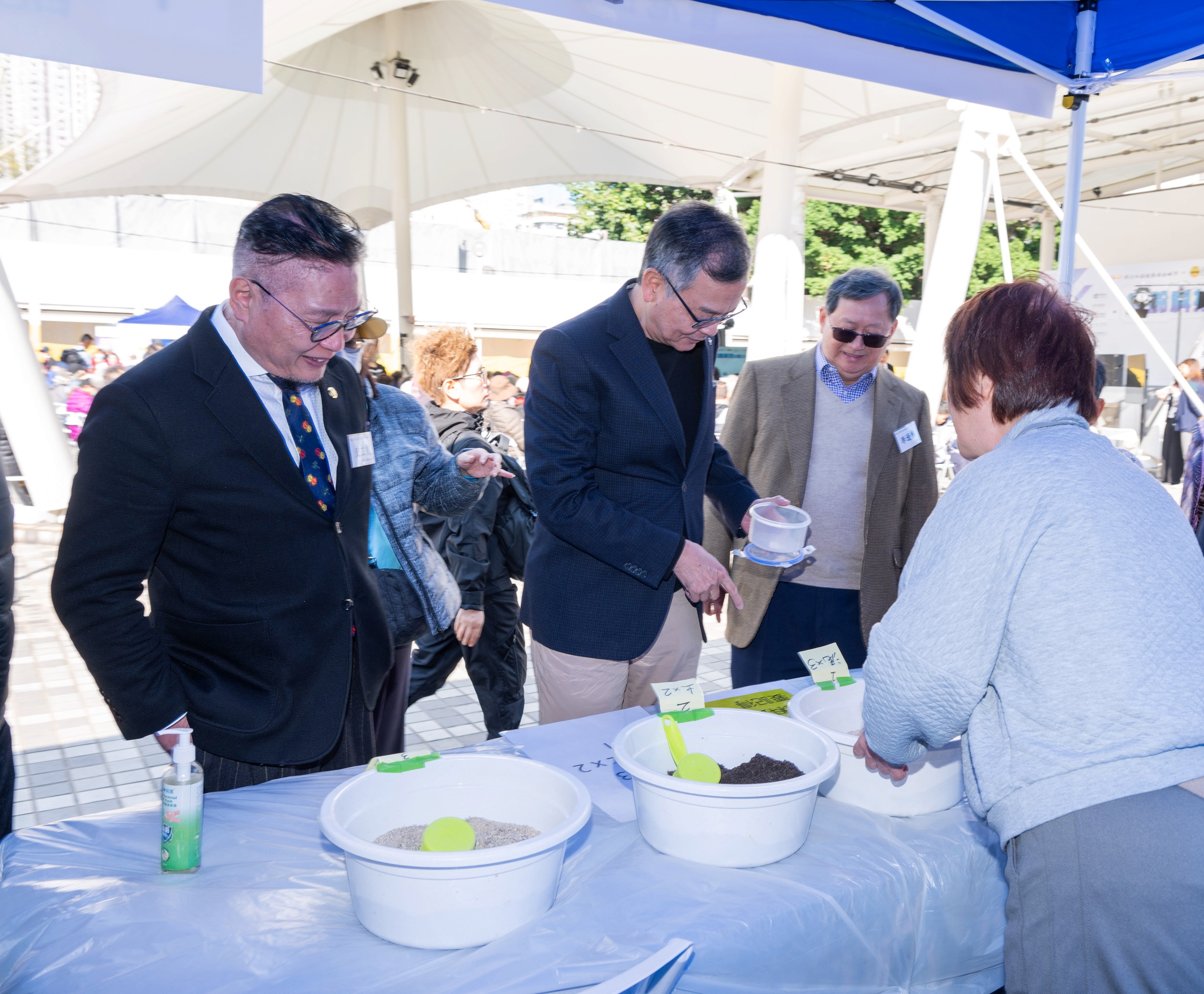 林正財醫生、史立德博士、李逢樂先生到香港盆景協會攤位作體驗