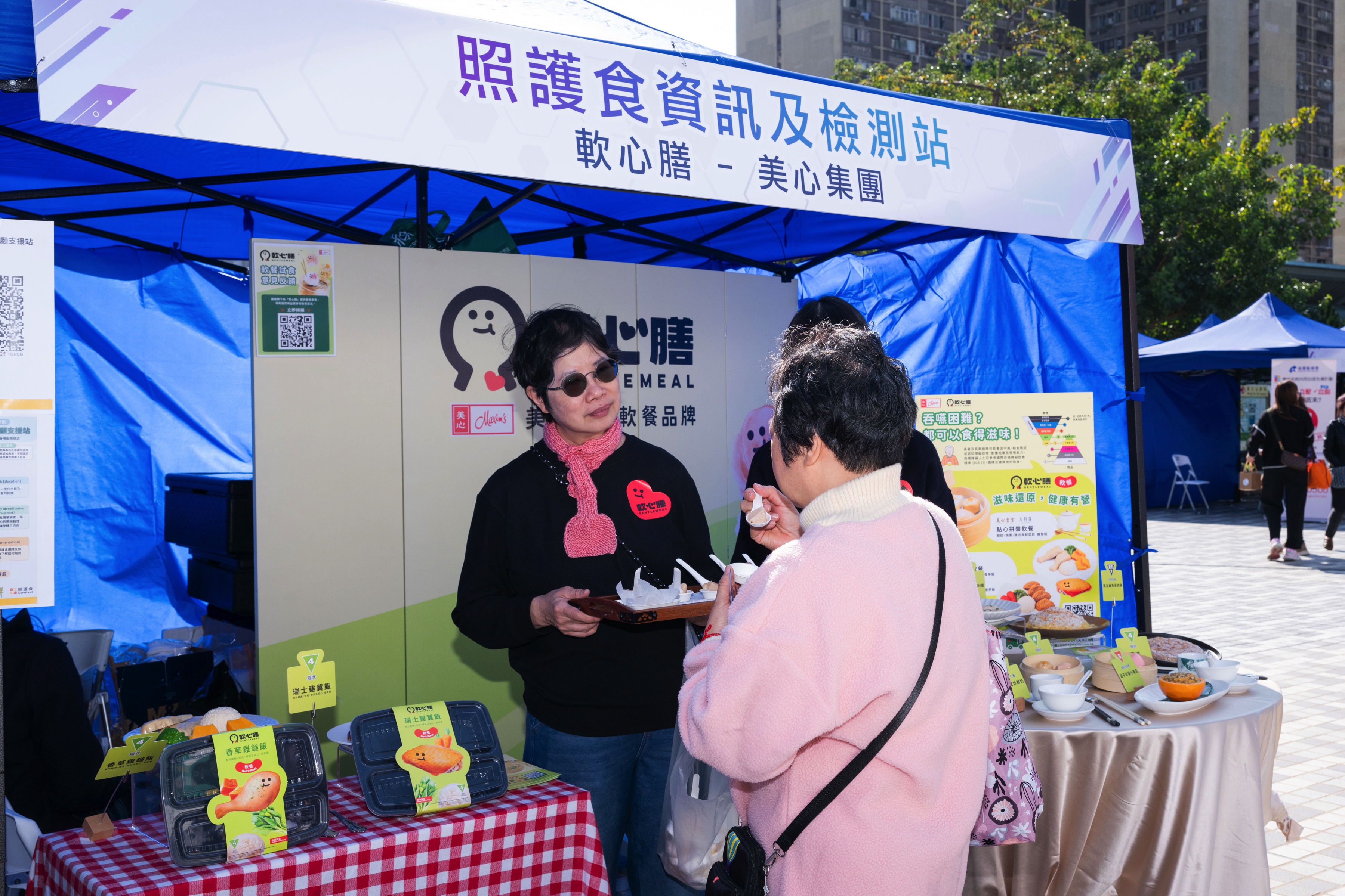 社聯照護食為居民講解照護食資訊(圖左)、美心集團提供軟餐體驗 (圖右)
