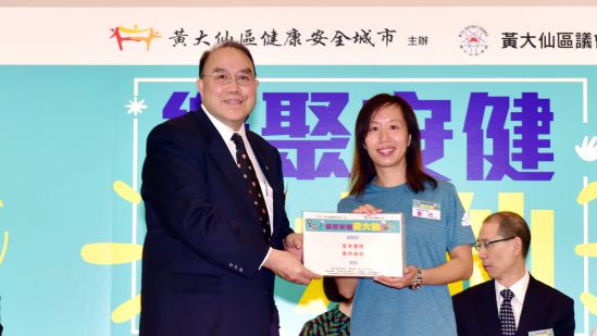 黃大仙健康安全城市董事局副會長吳明珍女士致送感謝狀予黃大仙健康安全城市義工